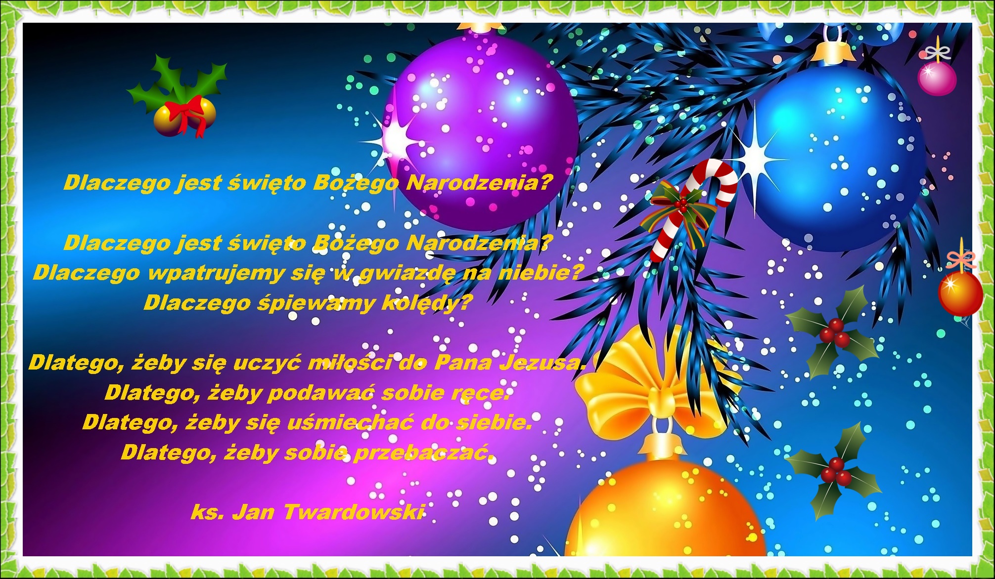 Ks. Jan Twardowski w wierszu Pomódlmy się w Noc Betlejemską pisał tak: